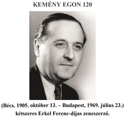 120 évvel ezelőtt született Kemény Egon zeneszerző és karmester több száz zeneművet (operettet, daljátékot, filmzenét, sanzont) komponált. Ötéves korától zeneszerzőnek készült, és klasszikus zenei tanulmányok után fordult a könnyűzene felé. Az 1930-as években Ábrahám Pál műveinek hangszerelőjeként Berlinben is dolgozott. A kétszeres Erkel-díjas művész első díját gyermekkórusra komponált dalciklusaiért kapta. Játszótéren című művére 1964-ben készített koreográfiát Géczy Éva és Péter László.